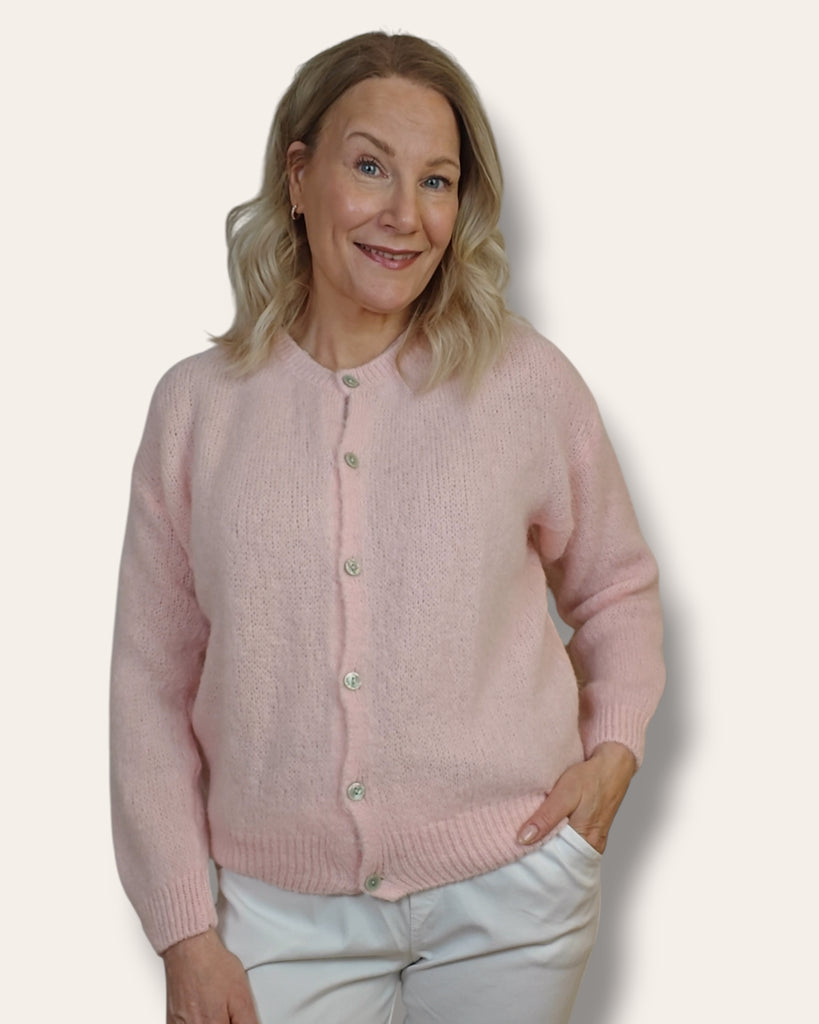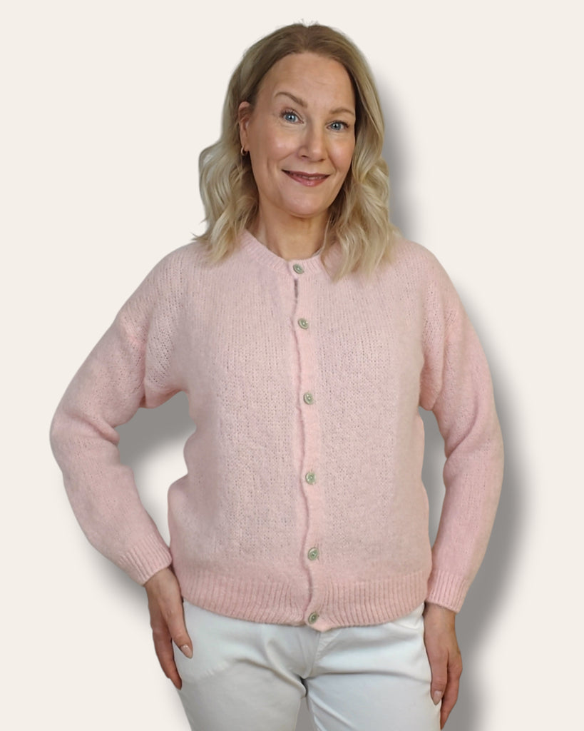 Ohuesta langasta neulottu takki on höyhenen kevyt ja ihanan pehmoinen, mutta todella lämmin ja hengittävä.