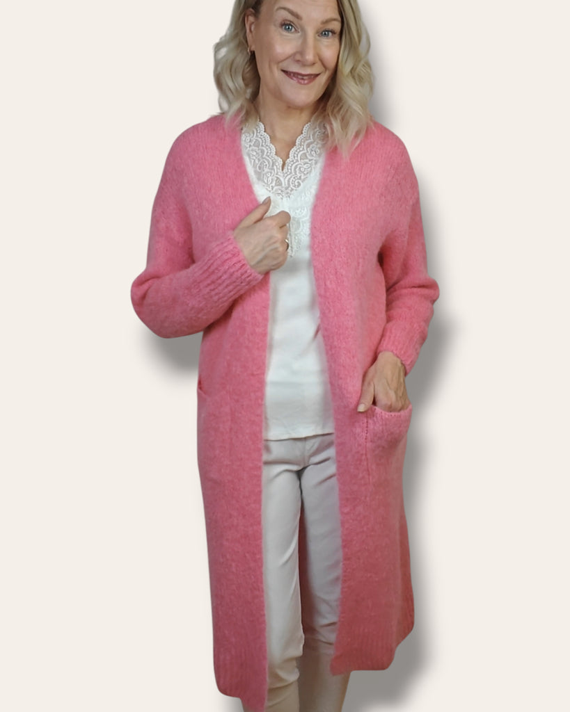 Ohuesta langasta neulottu takki on höyhenen kevyt ja ihanan pehmoinen, mutta todella lämmin ja hengittävä.