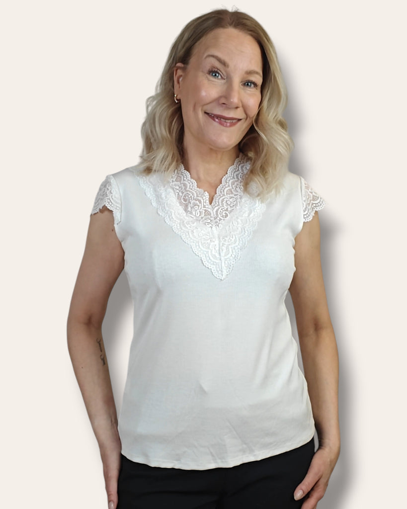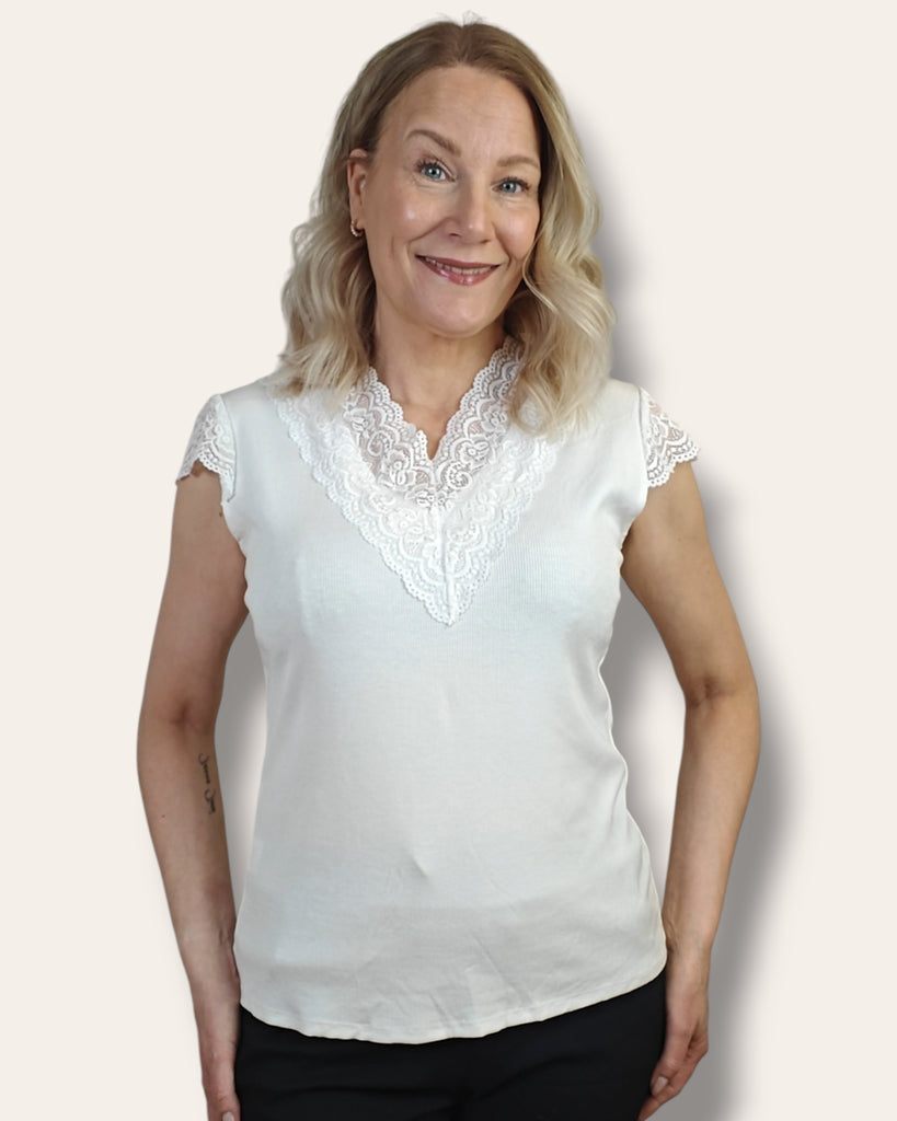 Kaunis trikoopaita pienillä pitsihihoilla ja